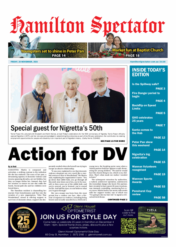 Hamilton Spectator – 28th November 2025 Subscribe or Login to see the rest of the content. Username Password * Remember Me Forgot Password News Roos lose young talent 28/11/2025 While the Hamilton Kangaroos have been busy recruiting new players for the football field, the netball program has unfortunately seen a mass exodus of... Two from two for Waves 28/11/2025 It was a successful weekend for the first-ever open women’s Western Waves team as the side won both of its matches in Bendigo last... Season opener washed out 28/11/2025 After a highly anticipated season opener at the Western Speedway, fans will be made to wait a little longer to see all of the...
