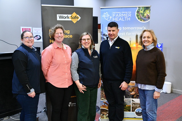 Kelly Barnes (NCFH), Dr Kathryn Robertson (Livestock Vet Services), Dr Jacquie Cotton (NCFH), Pete Bergmark and Jen Grigg (WorkSafe Victoria) partnered up with RIST to present the Cattle Safety Health and Safety presentation recently.