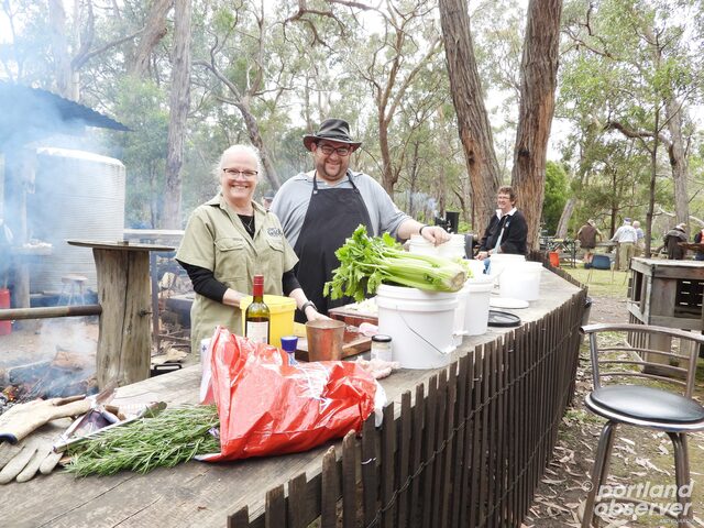 Michelle and Brett Duyvestyn, the daughter-in-law and son of bush block owners and event organisers Andrew and Christine Duyvestyn, start preparing a feed for the hungry eventgoers of 2022. (File)