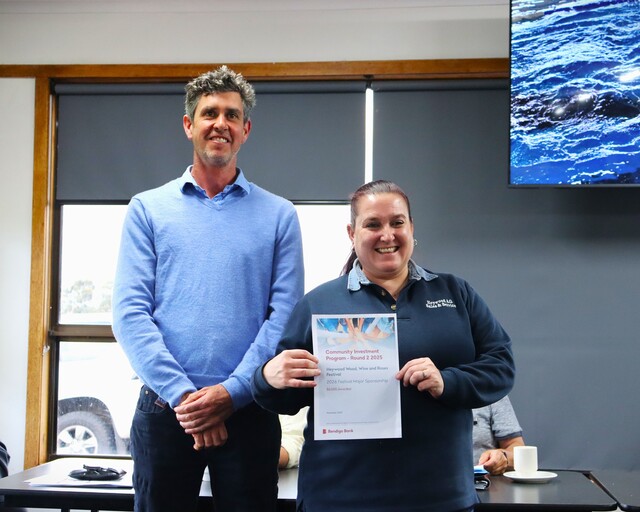 News $80,000 in community grants 16/12/2025 Facebook Promoting Heywood and Wood Wine and Roses representative Kelly Rose with bank board director Andrew Cain. (Charlie Sawyer-Bassett; 521589) Purchase this photo from Pic Store: 521589 Charlie Sawyer-Bassett A GENEROUS number of grants were made at the Bendigo Community Bank Heywood and District’s annual general meeting, totalling more […] Subscribe or Login to see the rest of the content. Username Password * Remember Me Forgot Password