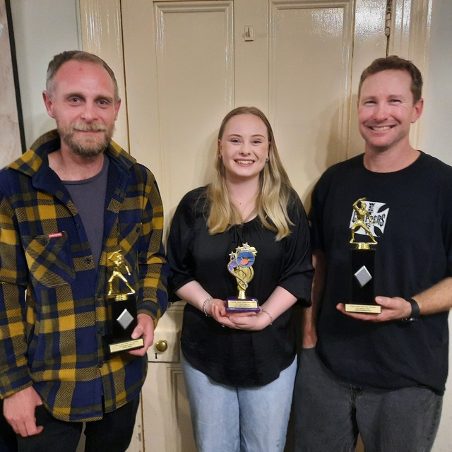 Individual awards went to from left; Peter Owen (runner-up), Ally Rowbottom (most improved) and Aaron Rowbottom (winner). (Supplied)