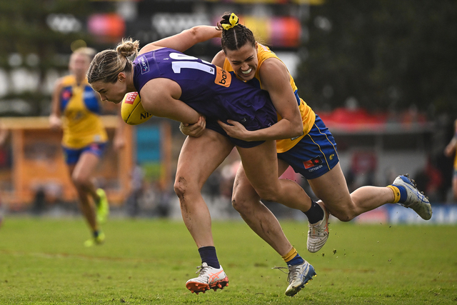 Penshurst export Jess Rentsch was handed a one-match suspension for a tackle not too dissimilar to this one. (AFL Photos/Daniel Carson)